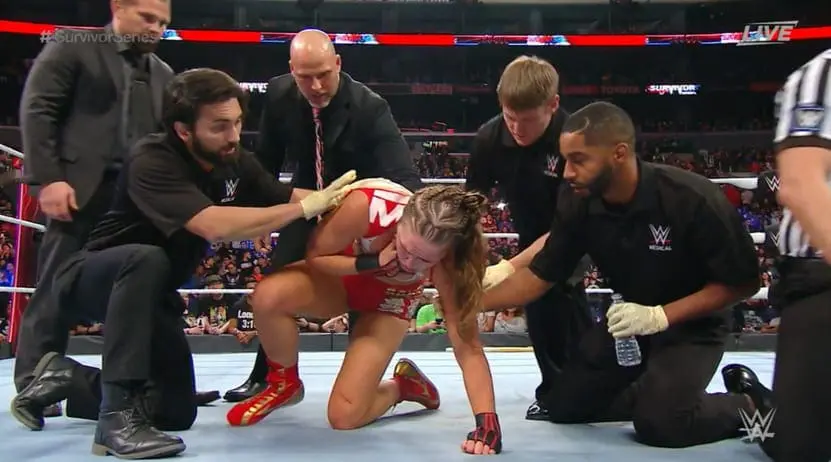 Ronda Rousey and Charlotte Flair were having a very competitive wrestling match and then all of a sudden, Flair decided to grab a kendo stick and start teeing off on The Baddest Woman On The Planet. Their match ended via DQ and then Rousey continued a post-match beatdown that was pretty extensive.