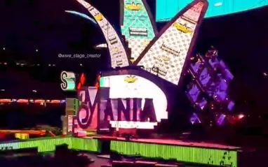 We posted photos the other day when they first started constructing the set. The crew is now putting on the final touches for this year’s set, as seen below.
