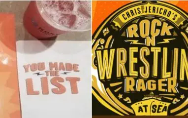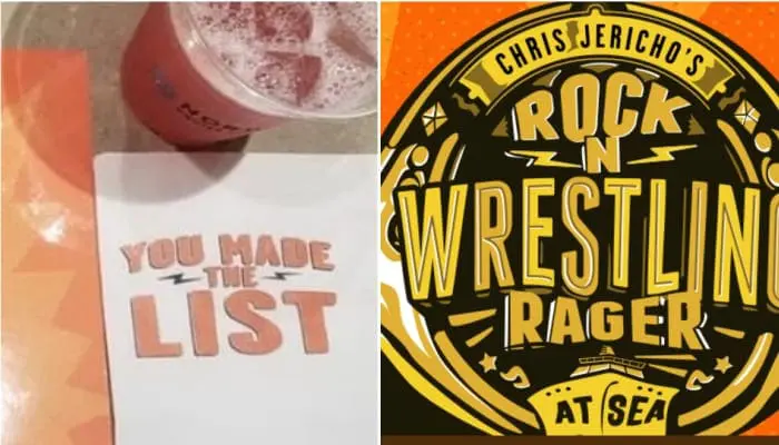 Chris Jericho’s Rock n Wrestling Rager At Sea set sail yesterday and by all accounts, it’s been a blast on the open water. Ringside News staff had to stay on the mainland to supply your fine people with pro wrestling news — but we’ve been keeping track of what’s gone on during the star-studded adventure and it looks like even the drink menu is customized for the customers on the voyage.