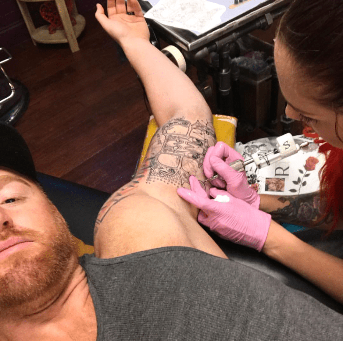 Heath Slater’s got kids and now he has a new tattoo. The former Tag Team Champion recently sat down in a tattoo artist’s chair once again in North Carolina where he had a pretty big portion of his arm covered in ink.