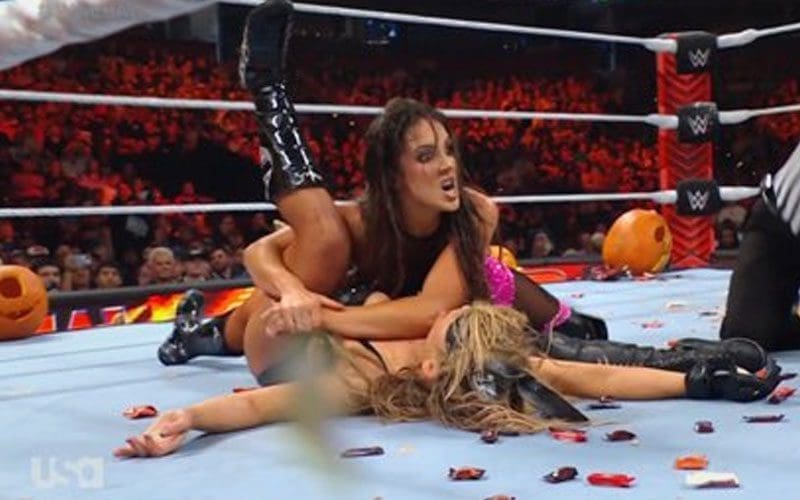 Chelsea Green and Natalya battled on WWE RAW this week in a Trick or Street Fight match. That annual contest saw the two women fight all over the ring, getting weapons, pumpkins, and candy corn into the mix.