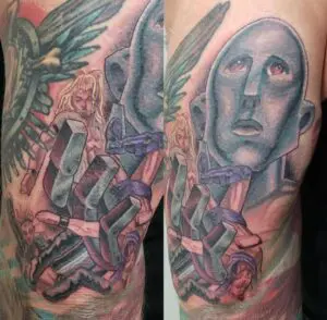 Chris Jericho has a lot of tattoos at this point and can be seen rocking his ink as he jams with Fozzy on their current tour to packed festivals and concerts. His music career has taken on a new life of its own at this point but he’s always been the Ayatollah Of Rock N Rolla.