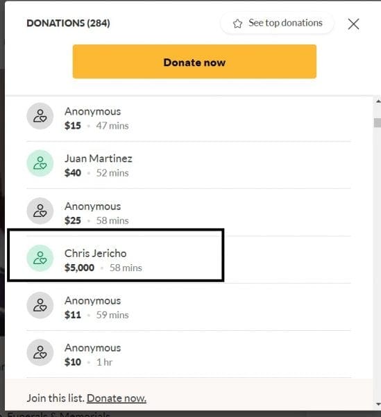 Chris Jericho donated $5,000 to the fund and Scott D’Amore donated $2,500. An anonymous donation of $3,000 was also among some of the high-dollar donations in this drive.