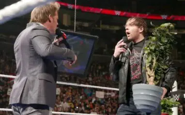 During the angle, Jon Moxley replaced Jericho’s Highlight Reel talk show with his own “Ambrose Asylum” segments. The set included only a hand-drawn sign and a potted plant, but that plant gained an unexpected legacy.