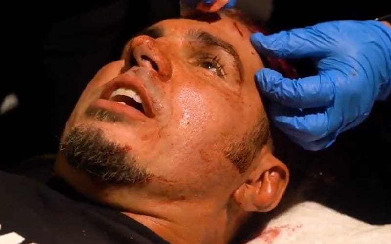 On last week’s episode of AEW Dynamite, Sammy Guevara botched a chair shot on Matt Hardy that busted the veteran open. Guevara couldn’t find the traditional folding chair for the spot and therefore picked up a heavier chair to hit Hardy with.