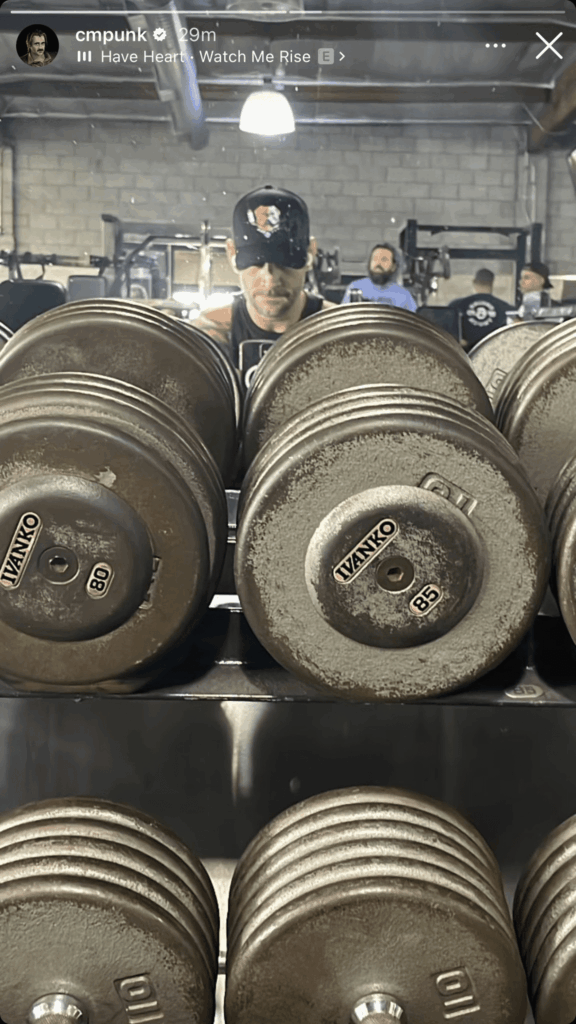 The former AEW World Champion took to his Instagram story and uploaded a photo of himself in the gym, showing off some heavy dumbbells. Naturally, this is a very good sign for Punk’s recovery progress.