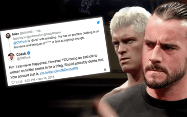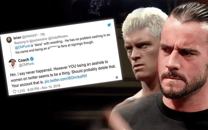 CM Punk just happened to read this reply and commented back saying “Hm, I say never happened. However, YOU being an assh*le to women on Twitter deems to be a thing. Should probably delete that. Your account that is.”