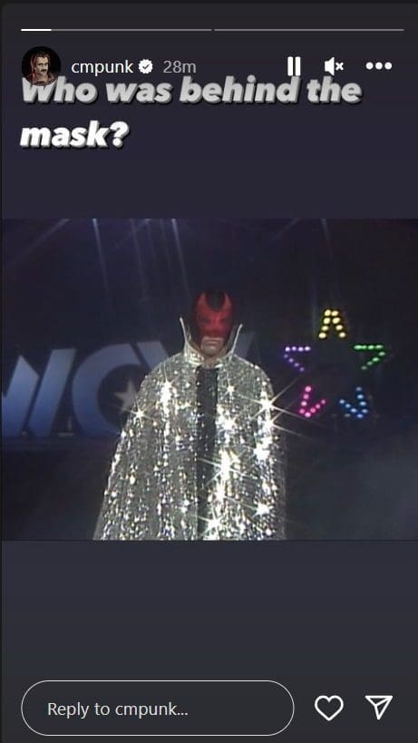 While it may be a far-fetched idea that CM Punk is under the devil mask, the Second City Savior may have heard that theory. He jumped on Instagram and posted a story with a masked man on WCW television. The caption he threw on there furthered the cryptic tease.