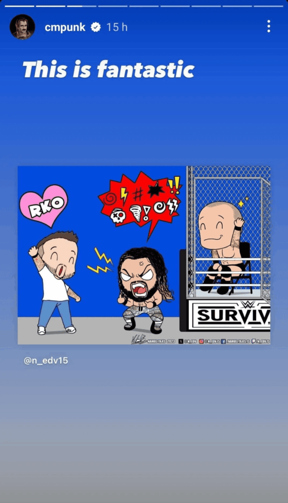 CM Punk’s return at the Survivor Series Premium Live Event sent shockwaves across the world of professional wrestling thanks to its sheer electricity. During his brief appearance at the event, fans noticed that Seth Rollins was visibly furious seeing Punk. Now Punk has referenced that whole incident with an amusing fanart.