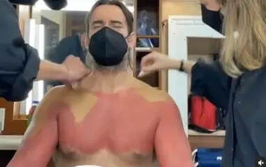 It took three hours to get all of that ink covered up, and the video shows how careful the team on Heels was to make sure his tattoos were not seen on the show.