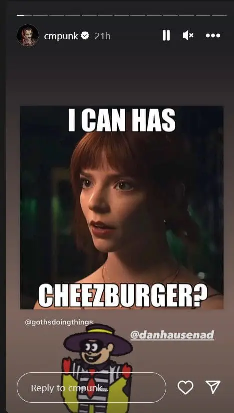 CM Punk posted a meme to his Instagram story last night that said, “I can has cheezburger?” Nobody really knew what was up, but Punk tagged Danhausen in the post.