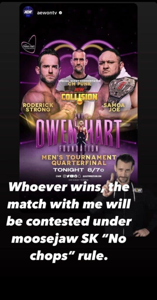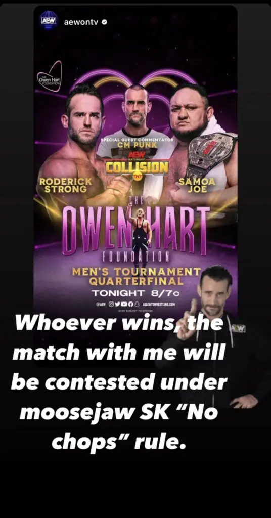 We will have to see who wins between Samoa Joe and Roderick Strong. If anything, we know that CM Punk isn’t looking forward to taking either of their chops.