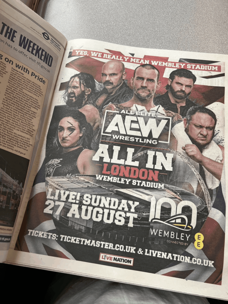 For a long time, CM Punk was not featured in any promotional material for the upcoming AEW All In event in London. That has changed now as a full-page ad for All In in the UK-based Metro newspaper has Punk featured in a big way, as it has more or less confirmed his status for the event.