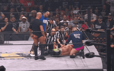 Cody fell to the mat and his head was busted open the hard way. He was bleeding badly as SCU and MJF jumped in the ring to check on him. Brandi Rhodes and officials gathered around him as well as Cody continued to bleed.