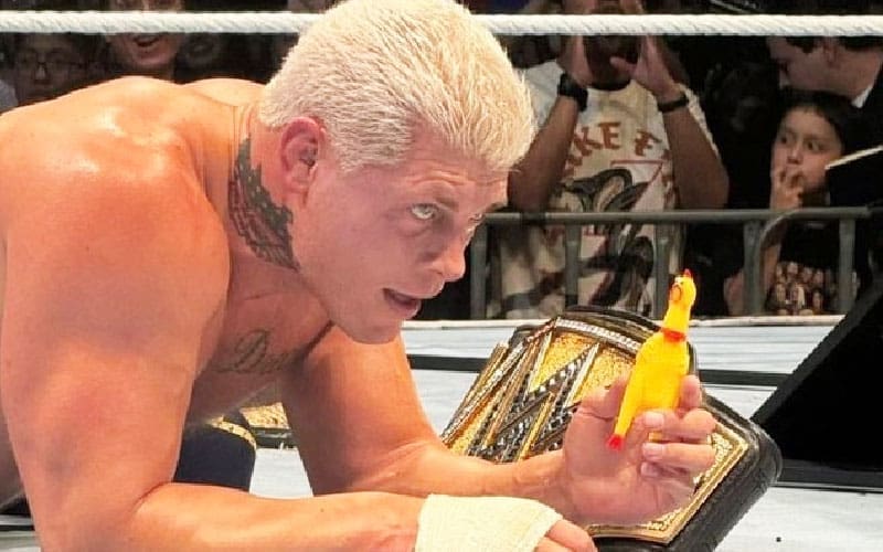 Cody Rhodes is the Undisputed WWE Champion and is currently the face of WWE, but that doesn’t mean he doesn’t have to deal with some recurring problems in his career. In fact, a rubber chicken came to haunt him again during a recent WWE live event.