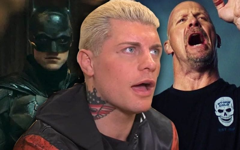 While speaking during WWE’s post-WrestleMania 38 media scrum, Cody Rhodes recalled meeting Steve Austin during a NJPW show in Long Beach, California. He also compared Steve Austin to Batman during their backstage interaction.