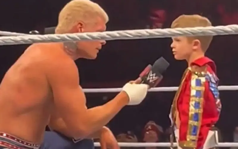 Following his win, Cody Rhodes met up with a young fan in the ring, who was completely decked out in Cody Rhodes’ gear. Rhodes made sure fans cheered on for the young fan, even asking him who his favorite WWE Superstar was. Naturally, he would name Cody Rhodes.