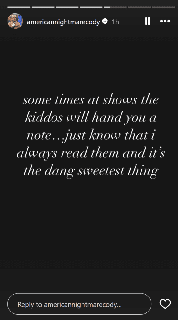 On February 18, Cody Rhodes took to his Instagram story to recount a touching moment when a fan passed him a handwritten note during a WWE live event. Cody expressed: