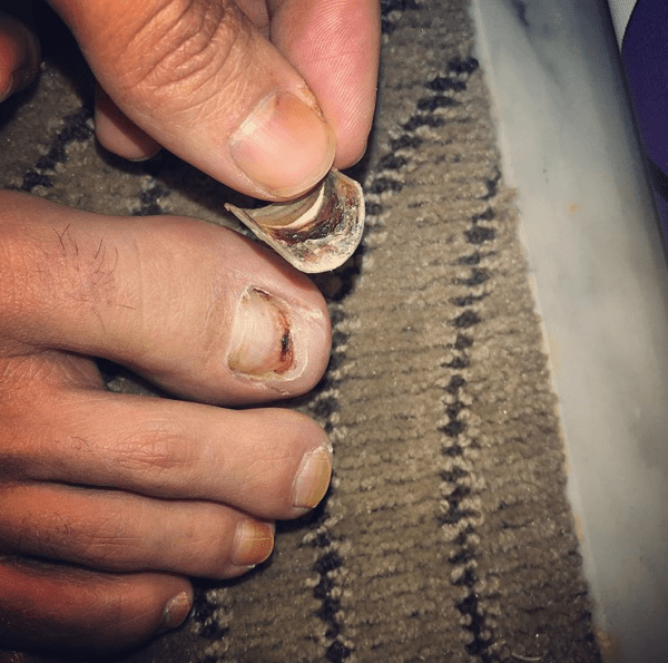 Toe is broken…and so is the nail hahaha 🤣💅 (4 more days of training, let’s tape it up and go!)