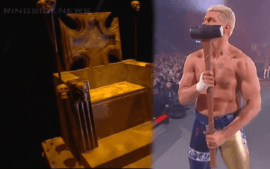 Before the Cody Rhodes vs Dustin Rhodes started there was an epic light show and then a throne was revealed in the middle of the stage. There were some skulls on it and some fans thought it looked like Triple H’s throne because it was supposed to.