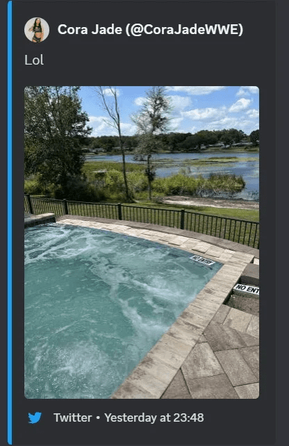 Cora Jade also posted a photo of a swimming pool with a caption that said: LOL. That seemed to give the impression that she wasn’t interested in the NXT premium live event that was starting in only a few minutes.