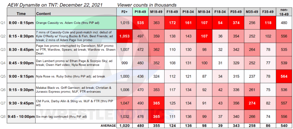 Many viewers opted to tune out during the interview. The Adam Page promo with Bryan Danielson aired in a segment that also included MJF cutting a promo with FTR and Wardlow vs Shawn Dean. That segment pulled in just over a million viewers. The Lambert promo topped out at 999,000 viewers.