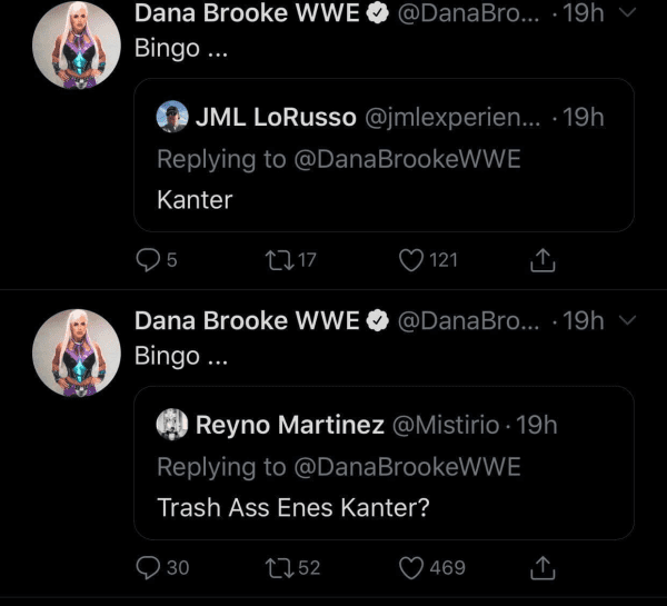 Dana Brooke put out a tweet about hating liars. When fans asked her if she was talking about Enes Kanter, she said “BINGO.” Then Brooke denied it.