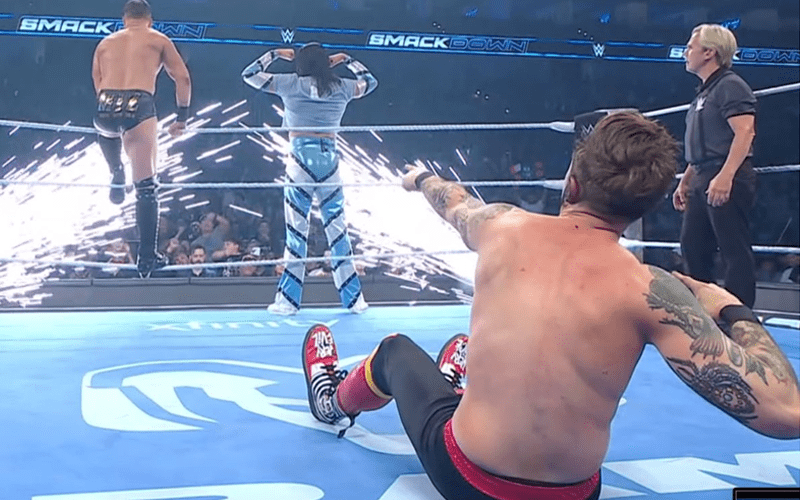 When The Miz and Kit Wilson celebrated, Danhausen sat up like The Undertaker. Then he did his “you are cursed” gesture and got fans to chant along. At that moment, pyro went off as The Miz and Kit Wilson were taunting the fans, and that scattered the heels.