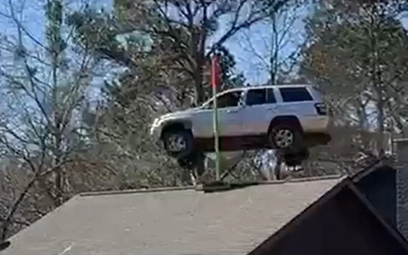 96 foot jump over my house in a jeep into trailers.