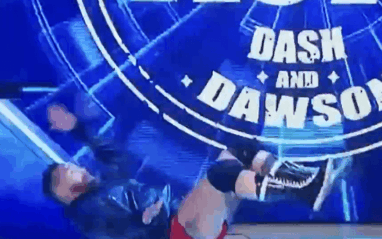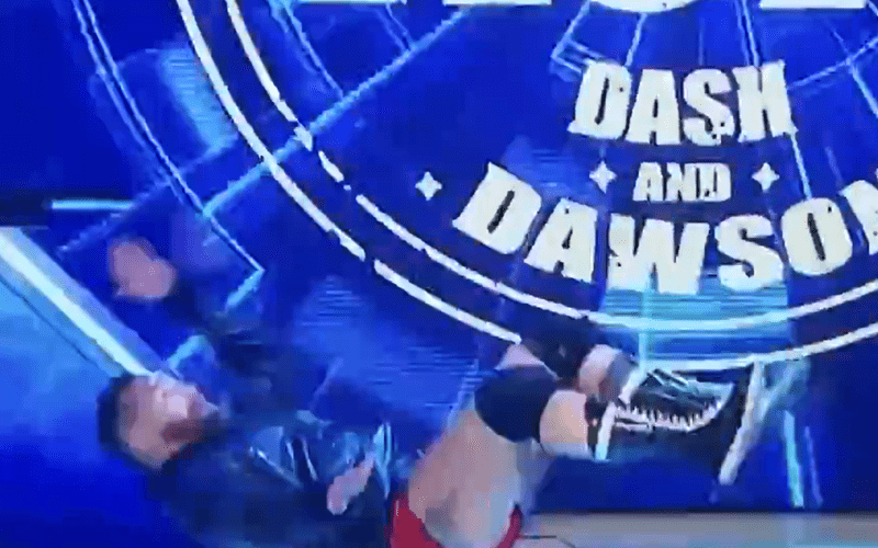 Dash Wilder tripped on the SmackDown set and he took a tumble. Thankfully, this entire event as captured broadcast live on FOX. This became instant comic fodder within the IWC.