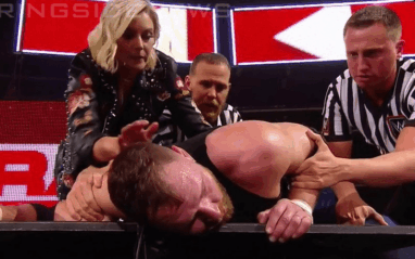 Lashley beat Ambrose down and used his body to demolish the announce table. Renee Young — Dean Ambrose’s wife — rushed to be by his side. As Ambrose sold this assault the crowd broke into “Thank you Ambrose” chants while the screen cut to black on Dean Ambrose’s supposed final appearance on Raw.