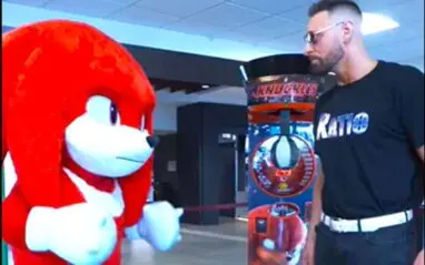 Dijak took to Twitter and uploaded a video, where he initially tried to punch a machine themed around the Sonic character Knuckles, as a promotion for Paramount’s ‘Knuckles’ show.