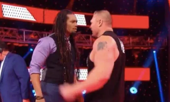 Dio Maddin didn’t appreciate Brock trying to intimidate his commentary partner, and as such, he stood up to Brock – and was subsequently beaten down by the WWE Champion.