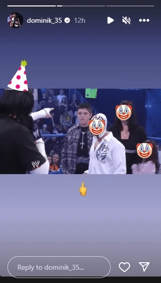 The NXT Champion finally responded to CM Punk’s tease, as he uploaded a party-themed variation of the image on his own Instagram Stories, where he put clown emojis on the faces of his family members. He also included a middle finger at the bottom, signifying his intention of a feud with Punk.