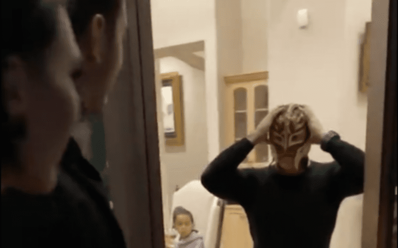 WWE posted a video of Dominik and Rhea Ripley paying a visit to The Mysterios on Thanksgiving. In the clip, Dom and Rhea can be seen have a chat with Rey, who’s reluctant to let them in for obvious reasons.