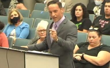 It was not noted if he received permission to miss last night’s taping. Obviously, he went to the meeting anyway. During his time on the microphone, Wuertz said that sex traffickers love masks because it covers the faces of children. He then went on a tirade about being a “trained certified volunteer about identifying the effects of harmful signs of child sex trafficking.”