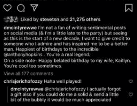 Chris Jericho commented to give McIntyre kudos for a “well played” post. Then McIntyre commented back saying: