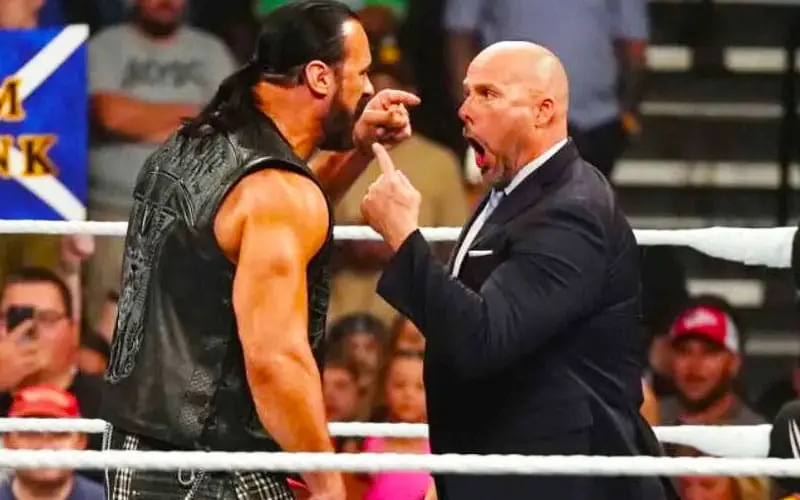 Adam Pearce fined and suspended Drew McIntyre for elbowing him in the face and being unapologetic about it afterwards. It led to Adam Pearce not lifting McIntyre’s suspension on RAW this week as well and McIntyre has now lashed out at WWE for the same.