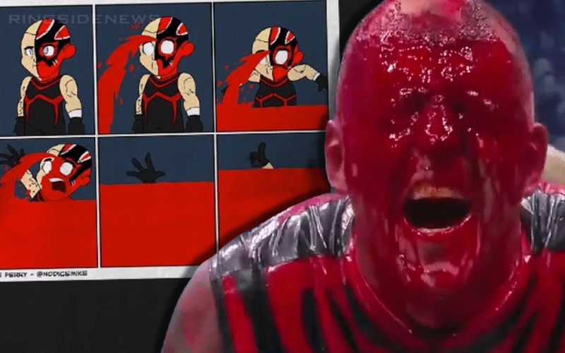 Dustin Rhodes is selling a new t-shirt that is poking fun at the amount of blood that poured from his forehead at Double Or Nothing. It is a pretty great design with cartoon panels and as the toon Dustin bleeds it fills up the square which eventually sees him drowning in his own blood. Yes, that’s a bit much, but then again he lost about a pint of blood at DON.