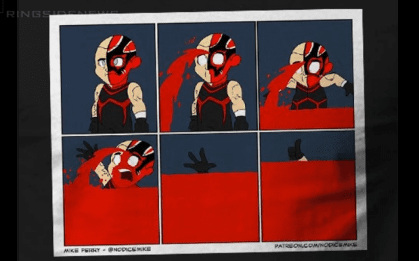 Now there is a t-shirt to celebrate this happy accident of immense bleeding in the ring. Because if Dustin learned anything in WWE it’s how to market a good thing.
