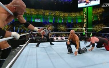 The Undertaker took the tag and soon took a Pedigree and even though Kane tried to stop him. Triple H sent him to the outside just to get caught in a Hell’s Gate from Taker. Kane took a Superkick fro HBK that sent him on top of Taker causing him to break the submission hold.