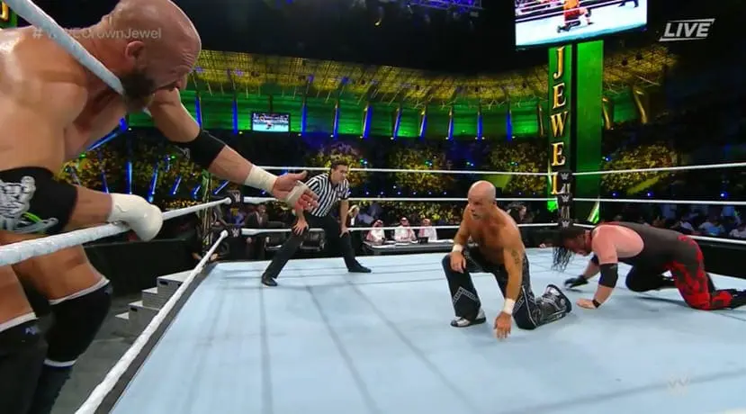 This was not a typical event and besides from the fact that it took place on a Friday at noon for fans in the eastern time zone — it took place in Saudi Arabia. Only WWE couldn’t say “Saudi Arabia” so they simply referred to Crown Jewel like it was the event’s location.