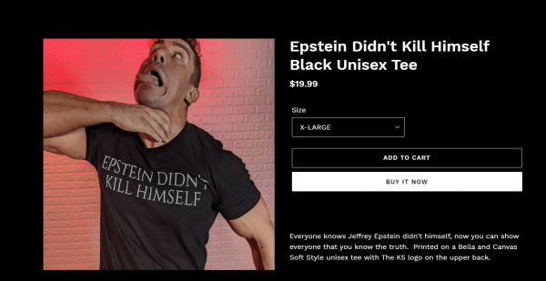 In the process of plugging his new “Epstein Didn’t Kill Himself” t-shirt, EC3 said that he is “100% healthy” and “I will never die! I will never die!” Perhaps he was just kidding, but it might be worth noting that he claims to be healthy.