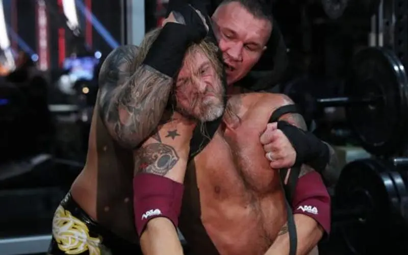 Edge and Orton did a spot in the gym of the WWE Performance Center where Orton wrapped weight-lifting equipment around Edge’s neck and he attempted to hang him. This was very close to what happened with Chris Benoit.
