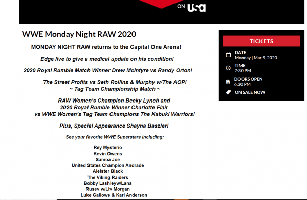 It was previously reported by Brad Shepard that Edge will be in Washington, DC on March 9th. Now the Capital One Arena is reporting just that as their official website says: