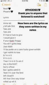 With a new track probably on the way very soon Real1 decided to let fans in on a piece of his creative process. He offered up some pages from his notebook that contain his original lines for Phoenix along with some little notes as well.