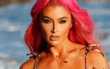The bikini showed off her incredibly toned figure and abs, as Eva Marie posed in front of the camera – seductively looking into the camera for fans. The background featured crashing waves cascading off her be flawless skin, making the overall photo mesmerizing.