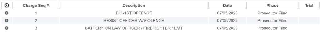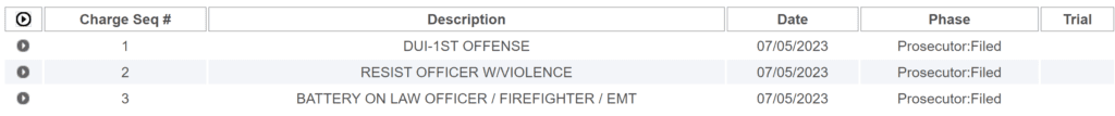 Kimber Lee still faces several charges including DUI, Resisting an Officer with Violence, and Battery on a Law Enforcement Officer. You may find her court documentation below.