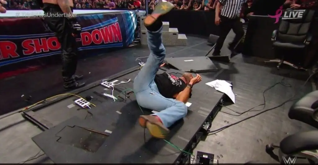 The WWE Super Show-Down concluded with Shawn Michaels taking a table break spot at the hands of The Undertaker’s chokeslam. He sold the move well, but there is more than meets the eye.