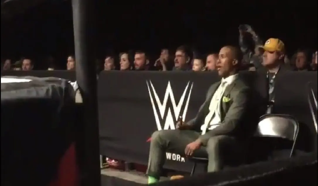 When you’re sitting ringside, it’s hard not to get into the action, but one fan who was lucky enough to get front row seats couldn’t help but notice Saxton as he sat at in a chair and marveled at the action in the ring.